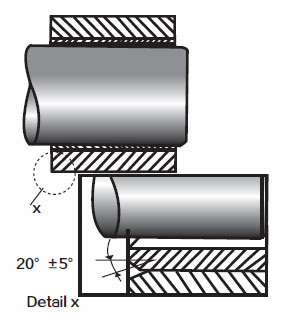 關于翻邊套,從翻邊套口到軸向轉換組件必須考慮半徑的轉變,切面要有—個足夠大的倒角。以防翻邊套口聚集污垢后仍然可以支持軸向載荷部件的邊緣。